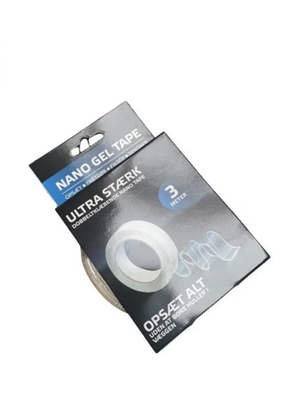 Bandă transparentă cu două fețe, acrilică, extrem de adezivă. Ideal pentru suprafete netede (placi, plastic, sticla). Cu banda, se pot fixa diverse obiecte, se lipesc covoare etc. Banda poate fi îndepărtată fără reziduuri.