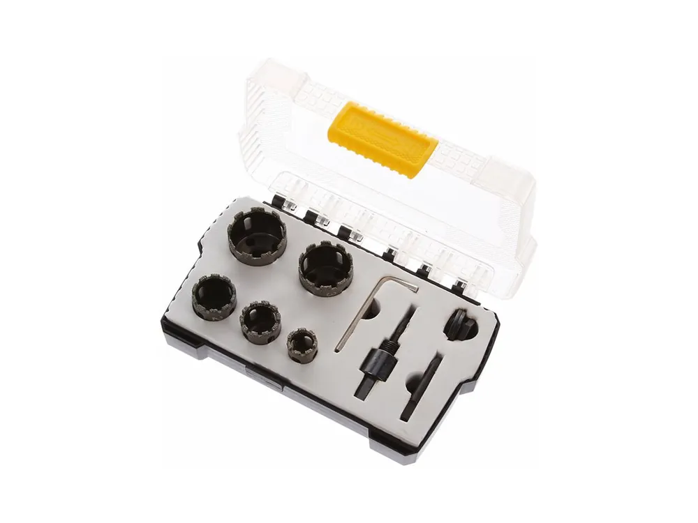 Potrivite pentru materiale dure, de ex. faianță, gresie, ceramică, sticlă, dar și marmură, granit și piatră artificială. Conține diametrele 20, 25, 29, 35 a 38 mm cu coadă amovibilă înșurubabilă. Livrarea conține și 2 buc. burghie de centrare și chei hexagonale,amplasat sinoptic în geantă de plastic.