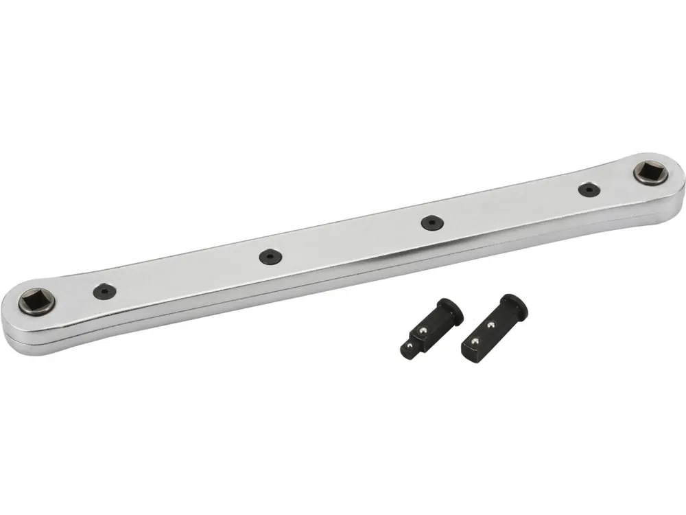Sculă care facilitează munca în locuri înguste sau greu accesibile, cum ar fi pompe de apă, servodirecţii etc. Dimensiunile accesoriului 340 x 35 mm, distanţă 300 mm. Prevăzut cu două adaptoare de acţionare, cu dimensiunile 1/4″ şi 3/8″.
