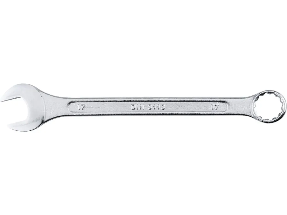 Cheie forjată dintr-o bucată de crom de înaltă calitate – oțel vanadiu, cap de cheie lustruit.- DIN 3113- Material: CrV- 17 mm