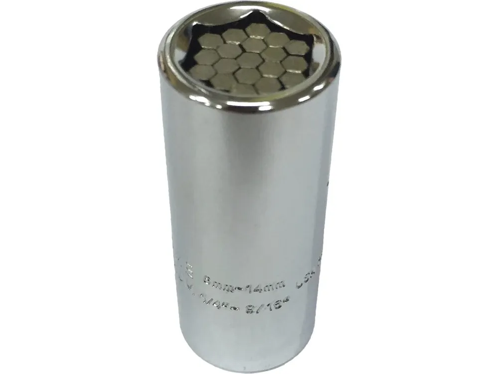 Adaptor tubular universal pentru dimensiunile cele mai obişnuite 6 – 14 mm pentru şuruburi, piuliţe (hexagonale şi pătrate), cârlige înfiletabile etc. Nu este necesar să luaţi cu dvs. seturi întrege de adaptoare; adaptorul nostru universal rezolvă totul. Conceput pentru a fi utilizat cu un clichet de 1/4“. Material: Oţel Cr-V. Dimensiuni cheie Ø22×52 mm