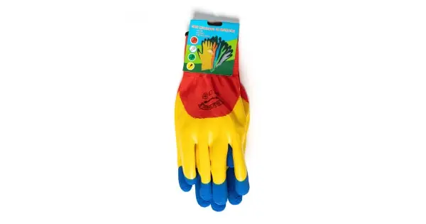 Chilipir Manusi tricot-latex tricolore, rosu, galben, albastru, Micul Fermier GF-1892
