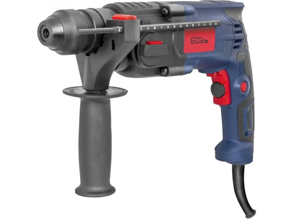 Foraj cu ciocane compacte, concepute pentru foraje de impact în mediul atelierelor de acasă, cabanelor etc. (→ renovare, lucrări de asamblare etc.).Functii: foraj de impact (→ diametru maxim al burghiului in beton: 20 mm), foraj fara impact (→ diametru maxim de foraj in lemn/otel: 30/13 mm).Preselecție/control viteză prin regulator/comutator rotativ (→ 6 trepte, interval: 0 – 2.200/min.), mecanism de impact pneumatic (→ 0 – 5.770/min.; intensitate impact: 1.9 J), alergare dreapta/stânga.Motor 650 W, comutator în două puncte cu blocare continuă de funcționare, cablu electric de conectare de 3 m H05RN-F.Construcție: mandrină cu eliberare rapidă SDS-plus, oprire adâncime, capac de praf, mâner în formă ergonomică cu inserție de amortizare și indicator de tensiune (→ LED), mâner lateral rotativ.Accesorii: burghie SDS-plus (→ set din 3 piese, diametre: 6/8/10 mm), husa de transport din plastic.Dimensiuni totale (L × W × H): 324 × 89 × 202 mm, clasa de protectie: II, tip de protectie: IP 20, Nivel de putere acustica LWA: 94,8 dB (A).Accesorii optionale: set de burghiu SDS-plus, 4 piese (diametre →: 5-6/8/10; numar de comanda: 58152).