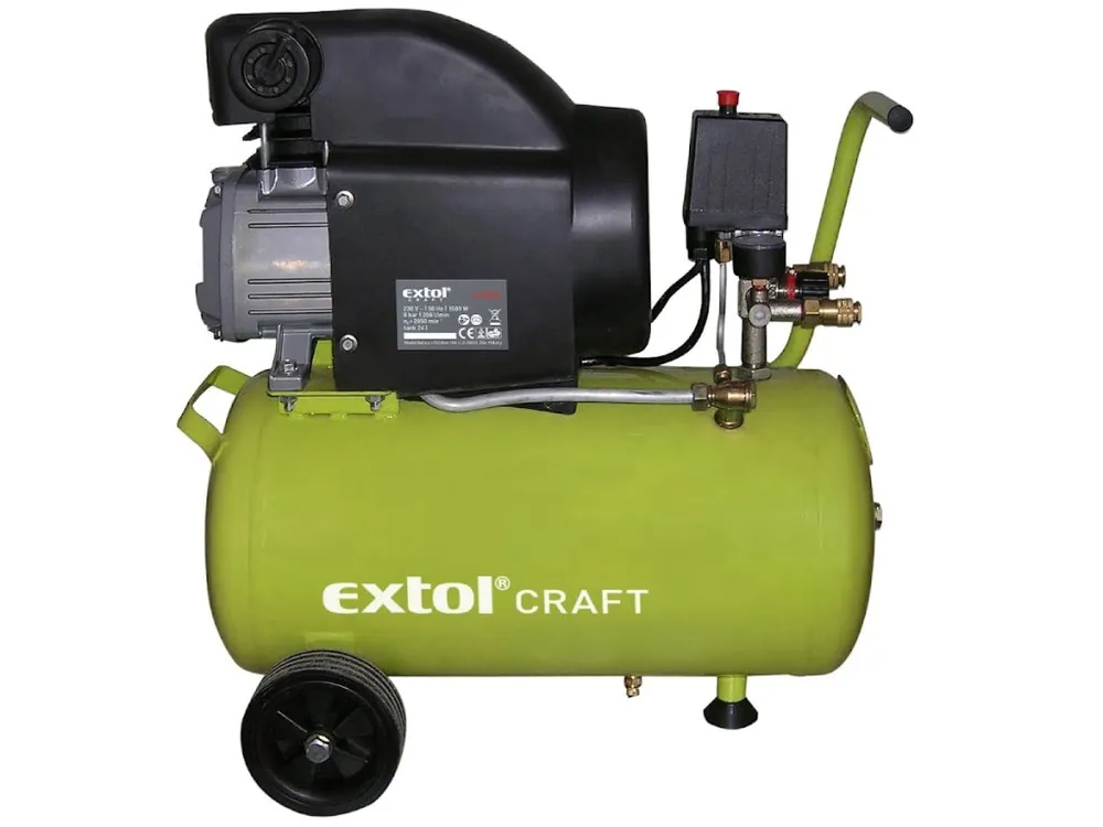 Indicatorul nivelului uleiului optic, roțile din trenul de rulare facilitează transportul compresorului, presiunea ridicată echilibrată de ieșire de 8bar și puterea de aspirație de 208 l/min vă permit să conduceți o gamă largă de unelte pneumatice. Pe un manometru clar setăm valoarea presiunii de ieșire necesare, a doua manometru arată valoarea presiunii din rezervorul de presiune.Compresorul electric cu piston de aer este proiectat pentru a fi utilizat ori de câte ori este nevoie de aer comprimat ca unitate pentru unelte pneumatice, pentru aplicarea vopselelor, curățarea cu aer, pentru umflarea anvelopelor etc. Soluția de proiectare pentru lubrifierea uleiului garantează performanțe mai mari și o durată de viață mai lungă a mașinii.- Timp de umplere: – 30 min- Greutate: 25 kg- Presiune maxima: 8 bari (0,8 mPa)- Tensiune/Frecventa: 230 V/50 Hz- Capacitate rezervor: 24l- viteza: 2850/min- capacitate de umplere: 128l/min- Putere: 1500 W- Putere de aspirare: 208l/min