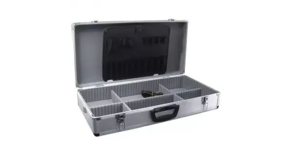 Material: aluminiu; dimensiuni: 640x320x150mm; rezistent la deteriorare; numeroase buzunare si compartimente; inchizatoare metalice; curea de transport CARACTERISTICI: Material: Aluminiu Tip: Cutie de scule Serie: DEDRA Dimensiuni [mm]: 640x320x150