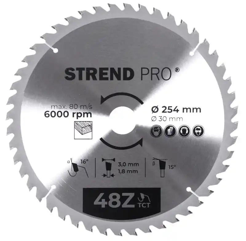 Disc Strend Pro TCT 254×3,0x30 / 20 mm 48T, pentru lemn, ferăstrău, lame SK Reduceri