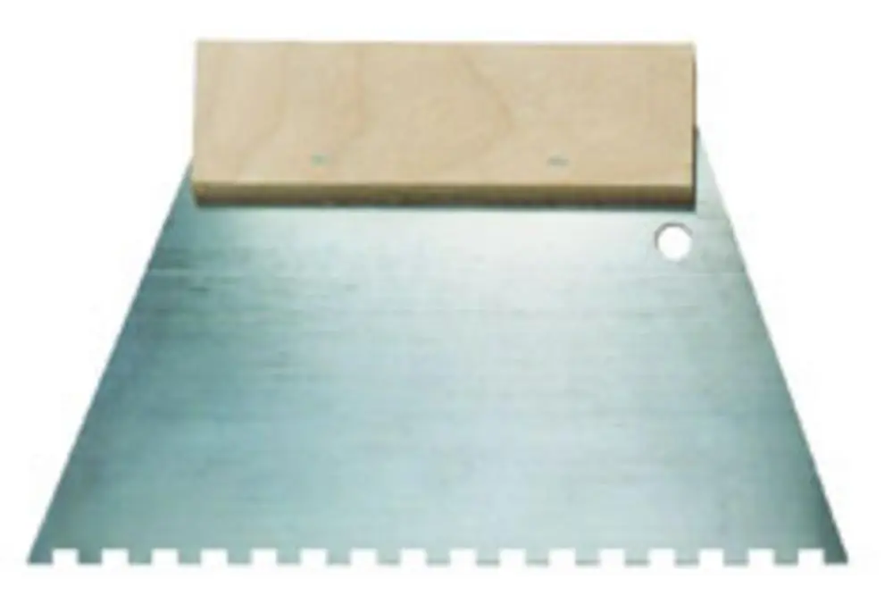 Spatulă din oțel de 180 mm cu dinți E4 cu mâner din lemn