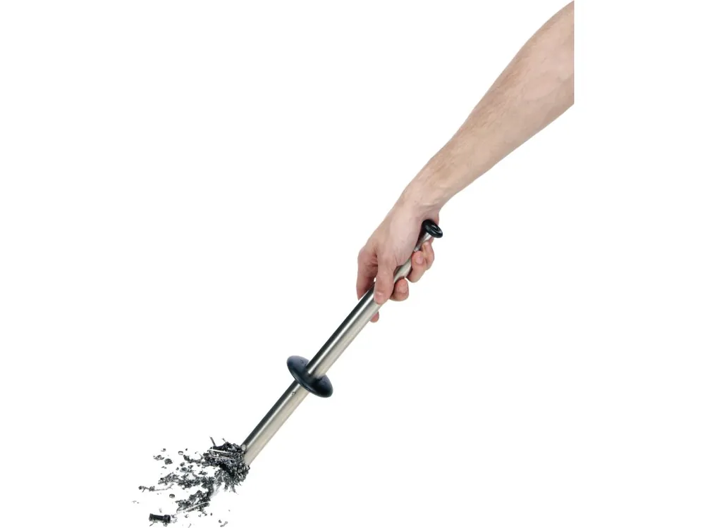 Modalitate uşoară şi simplă de îndepărtare a deşeului de oţel din spaţiul de lucru a maşinii de prelucrat. Utilizarea acestei ustensile este mai rapidă şi mai sigură decât cârligul pentru aşchii. Este îndeajuns apropierea în spaţiu şi toate aşchiile de oţel se prind de bară. După ducerea în vasul de selectare a deşeurilor, prin tragerea mânerului se poate elimina efectul magnetului permanent şi particulele prinse se desprind. Se poate folosi şi la separarea oţelului de alte metale în în materii prime selectate, în condiţiile atelierului. Lungime 405 mm.