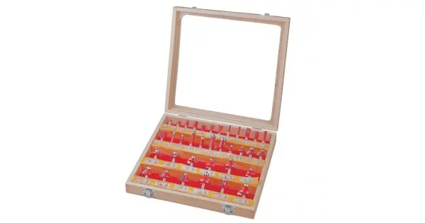 Freze profilate Router bits ø 8mm set 35 piuese, ambalaj lemn, Raider
