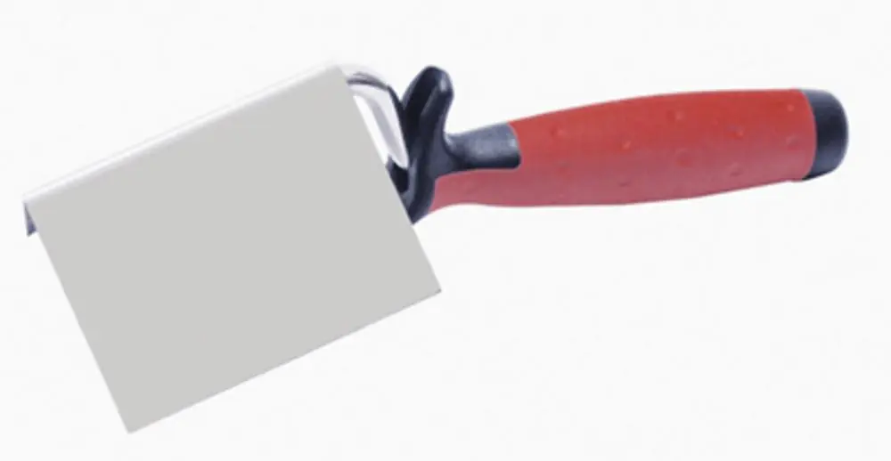 lingură de colț din oțel inoxidabil (colț) cu mâner de cauciuc, dimensiune 80x60x60 mm, utilizată pentru reglarea și curățarea colțurilor și colțurilor exterioare și interioare
