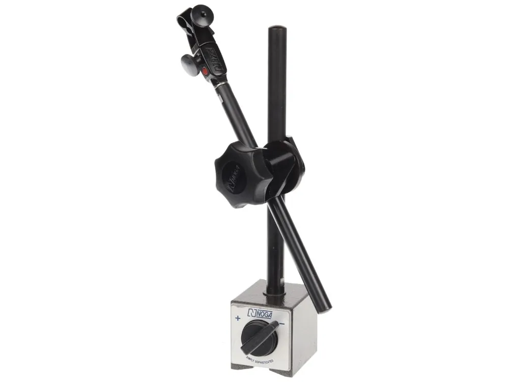 Fără mecanism de închidere centralizată, reglare fină la fixare. Bază cu magnet comutabil 800 N, forţă magnet 800 N, dimensiuni: 50 × 60 × 55 mm. Braţe: ø 14 × 203 mm şi ø 12 × 185 mm. Dispozitiv de fixare cu reglare fină, 3/8″, ø 6 mm; ø 8 mm; coadă de rândunică 8 mm.
