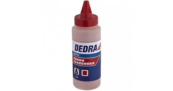 Creta rosie pentru dispozitiv de trasat cu ata Dedra 115gCretă de marcat, folosită pentru a colora șirurile de marcare. Creta se caracterizează printr-o precizie și vizibilitate excelente pentru urme vizibile pe o mare varietate de suprafețe. Pentru utilizare în interior și exterior.Date tehnice: