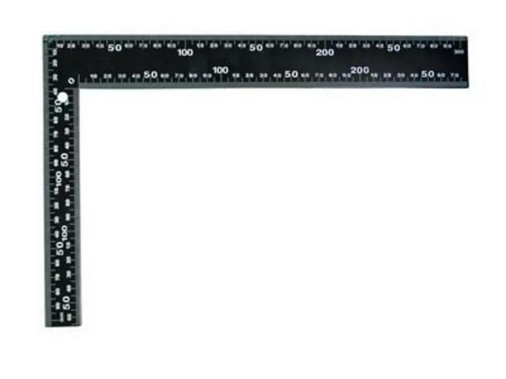 Colț din oțel cu arc, 300×200 mm, scară pe interior și exterior, culoare neagră