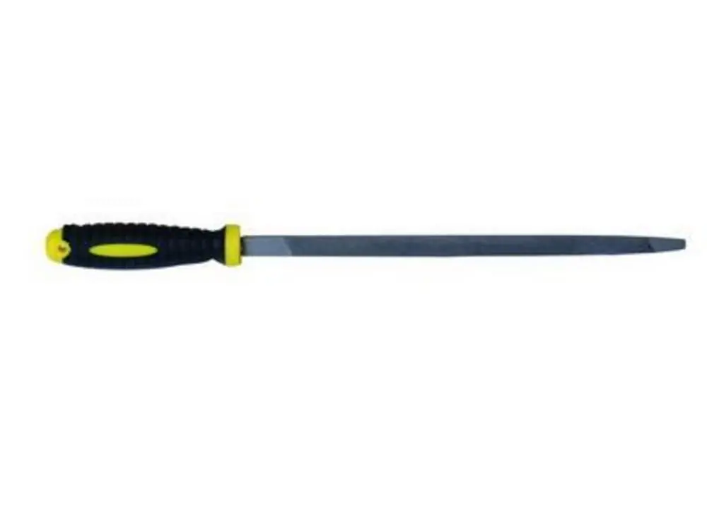 pila triunghiulara din otel calit, lungime de lucru 150 mm, maner cu cauciuc PTR inmuiat