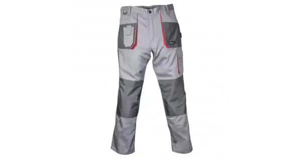 Material: 80% poliester 20% bumbac, greutate: 190g/m2, respecta EN ISO 13688:2013, 9 buzunare, dintre care 6 cu inchidere cu carlig si bucla, buzunar pentru telefonul mobil, cusaturi triple, talie reglabila cu banda elastica si nasturi, inel pentru chei, bucla pentru ciocan, buzunare intarite pentru genunchiere CARACTERISTICI: Tip: Pantaloni de protectie Serie: DEDRA Culoare: gri Greutate [kg]: 0.54 marimea: XXL / 58 Sex: Masculin Greutate [g/m2]: 190 Numar de buzunare: 9 Cusaturi intarite: DA Posibilitatea de a introduce genunchiere: DA Rezistent la vant: Nu Rezistenta la apa [mm H2O]: N / A