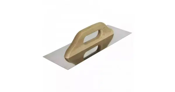 otel inoxidabil, maner din lemn de fag CARACTERISTICI: Tip: Plutitor din otel neted Serie: DEDRA Dimensiuni [mm]: 380×130