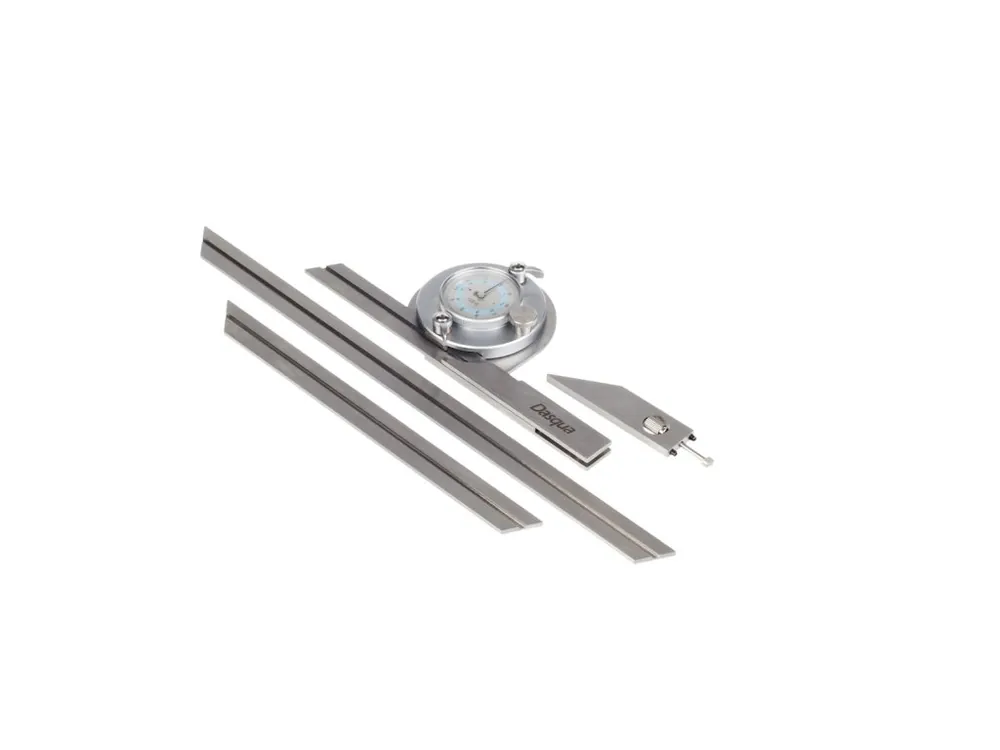 Raportor universal de înaltă precizie, cu o gamă de 0 – 360° și o precizie de 2′, realizat din oțel inoxidabil anticoroziv, oferă o reglare fină, lină și o scară circulară pentru o lizibilitate precisă, completată cu o lupă. Suprafața de măsurare întărită, șlefuită și șlefuită asigură o mișcare lină. Raportorul este echipat cu trei lame (150 mm, 200 mm și 300 mm).
