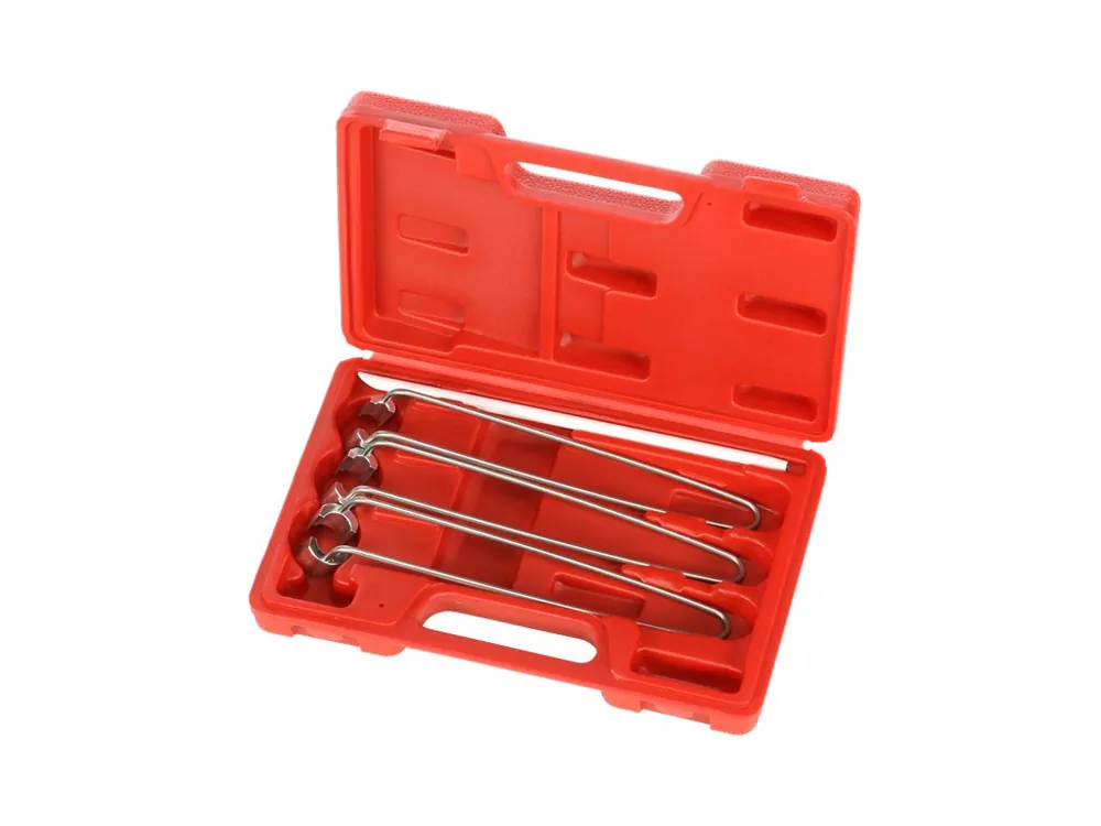 Conține 3 buc. ustensile de diferite mărimi prevăzute cu fălci magnetice pentru introducerea și scoaterea ușoară a semilunilor de siguranță ale supapelor. Amplasare în casetă de plastic.