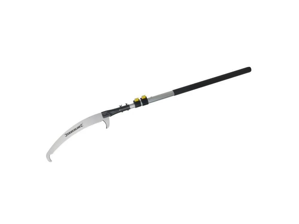 Fierăstrăul telescopic rezistent pentru tăiere Silverline, cu dinți ascuțiți pe trei fețe, este ideal pentru tăierea rapidă și curată a crengilor aflate la înălțime, fără a folosi scara. Tija telescopică ușoară se extinde de la 1,5 m până la 2,5 m, iar secțiunile se fixează ferm pentru o muncă în siguranță. Lama special profilată facilitează tăierea și asigură o tăietură lină chiar și la crengi mai groase.