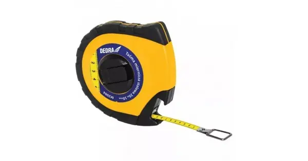 Banda rezistenta la coroziune din otel, carcasa TPR + ABS, clasa de precizie: MID II CARACTERISTICI: Material: oTel Tip: Banda de masura din otel Serie: DEDRA Latime [mm]: 10 Blocada: Nu Infasurare automata: Nu Clasa de precizie a masuratorilor: clasa MID II Raza [m]: 20