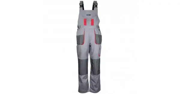 Material: 80% poliester 20% bumbac, greutate: 190g/m², respecta EN ISO 13688:2013, 9 buzunare, dintre care 7 cu inchidere cu carlig si bucla, buzunar pentru telefonul mobil, cusaturi triple, talie cu banda elastica si nasturi, inel pentru chei, bucla pentru ciocan, bretele reglabile, buzunare intarite pentru genunchiere, eticheta de identificare pe spatele pantalonilor CARACTERISTICI: Tip: Salopete de protectie Serie: DEDRA Culoare: gri Greutate [kg]: 0.69 marimea: XXL / 58 Sex: Masculin Greutate [g/m2]: 190 Numar de buzunare: 9 Cusaturi intarite: DA Posibilitatea de a introduce genunchiere: DA Rezistent la vant: Nu Rezistenta la apa [mm H2O]: N / A