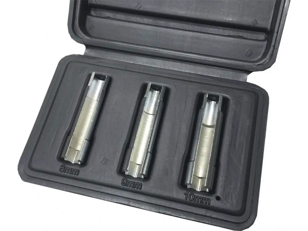 Un set de chei proiectate special pentru montarea şi demontarea bujiilor incandescente. Profilul permite utilizarea uşoară fără să fie necesară deconectarea cablurilor. Setul conţine chei cu următoarele dimensiuni: 8; 9; 10 mm. Pentru maşini: Alfa Romeo 147, 156, 159, GT; Fiat Bravo, Stilo; Opel Astra, Signum, Vectra, Zafira; Saab 93, 95. Livrate într-o cutie din plastic.