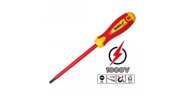 Åžurubelnita izolata plata CARACTERISTICI: Lungime [mm]: 100 Izolatie: DA Varf magnetic: DA Material: S2, TPR Tip: Surubelnita izolata Serie: DEDRA Tip de bacsis: SL3 Numarul este inclus: 1 Dimensiunea varfului: 3 Informatii suplimentare: certificat VDE