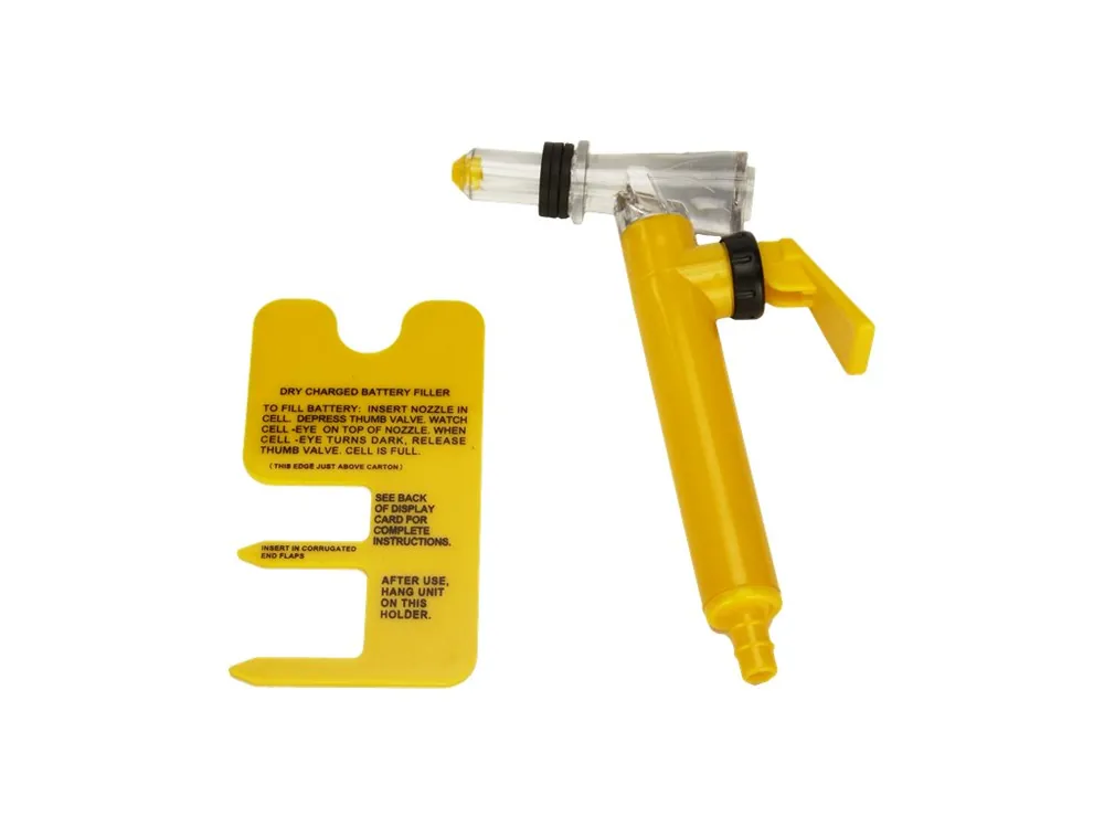 Pistolul cu ventil pentru umplerea în siguranţă cu electrolit a acumulatoarelor auto uscate. Capul pistolului este construit în aşa fel încât să fie posibilă urmărirea vizuală a nivelului de umplere. Închidereala culoare a vizorului semnalizează umplerea elementului. Se poate utiliza şi la completarea cu apă distilată.